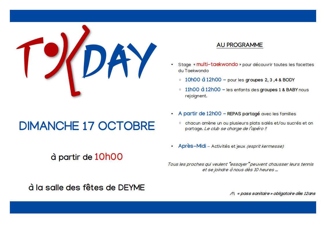 - pour le BODY Taekwondo le Mardi 09 Septembre